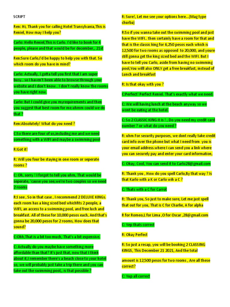 SOLUTION Hotel Reservation Script Studypool Example Script Of Hotel Reservation Review these expressions and read the. Here are some typical phrases and expressions to use when a guest makes a booking to stay at your hotel. May i have your full name, please? A phone call to reserve a hotel room in english. My name is john sandals. The complete conversation between the man making the reservation and the hotel.. Example Script Of Hotel Reservation.