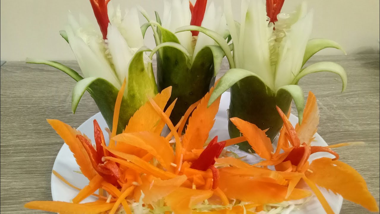 Cucumber Show Vegetable Carving Garnish Cucumber Decoration Simple Vegetable Carving Ideas 00:00 how to make beautiful peacock (bird) from onion & bell. how to make birds, flowers, and other centerpieces from carved vegetables with instructions & related resources. I am going to share with you a few simple vegetable garnishes with. i like to make simple food decorations from vegetables for a perfect finish for the party table!. Simple Vegetable Carving Ideas.
