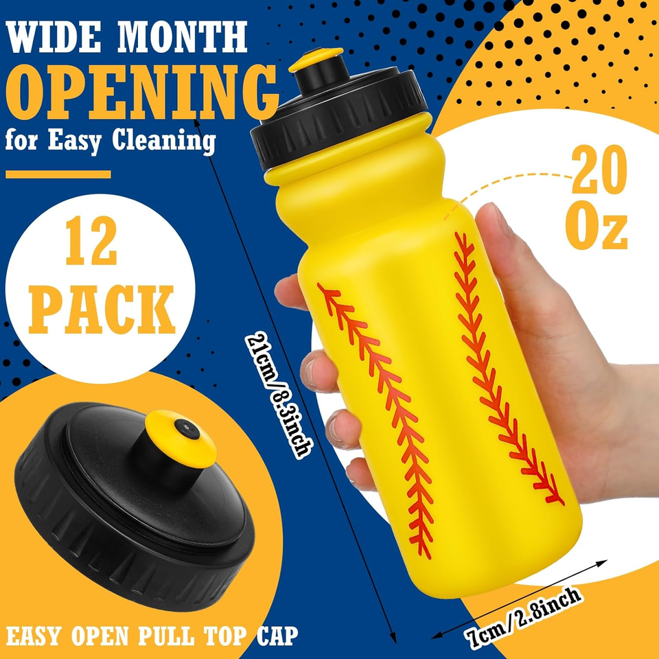 12 Pack Softball Water Bottles Bulk 20 oz Reusable Squeeze Water