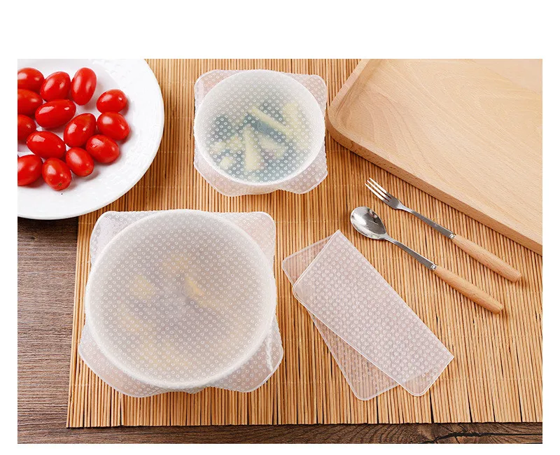 4 Pcs Set Bpa Free Dishwasher Microwave Safe Silicone Food Saver Wraps
