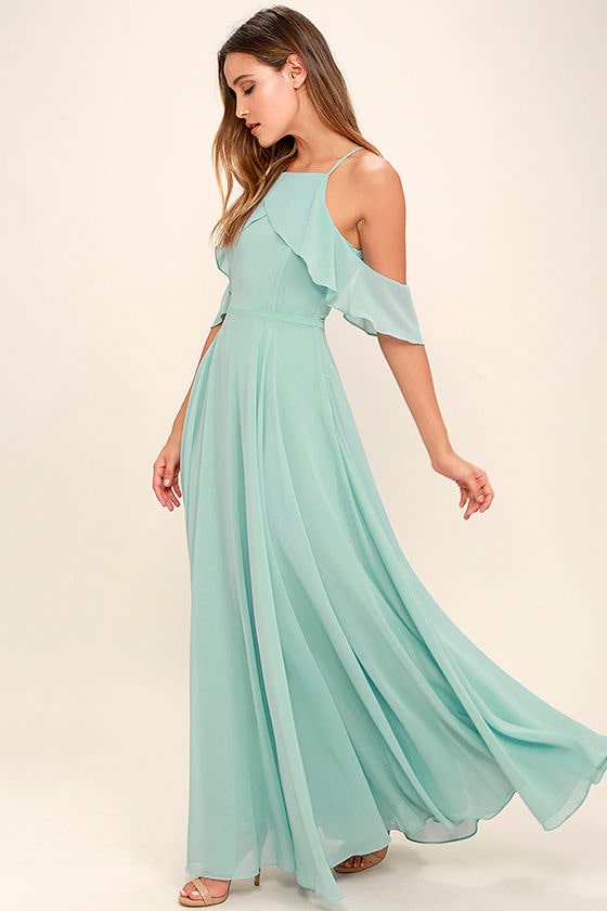 Lovely Mint Blue Dress OfftheShoulder Maxi Chiffon Maxi 84.00