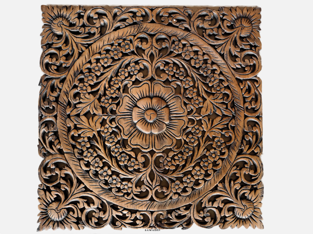 Buy Thai Motif Floral Carved Wood Wall Hanging Online