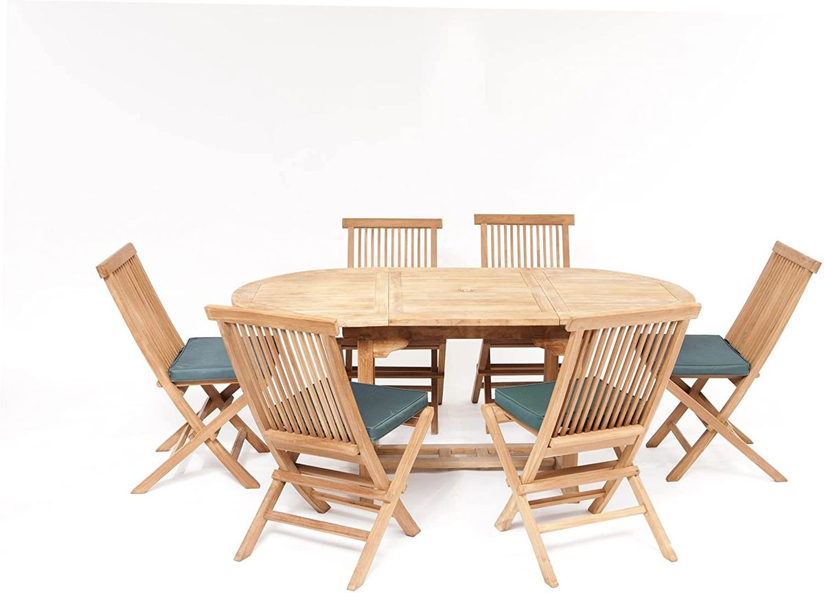 HANOVER 6 SEATER TEAK OVAL Patio Dining Set with extendable table 6