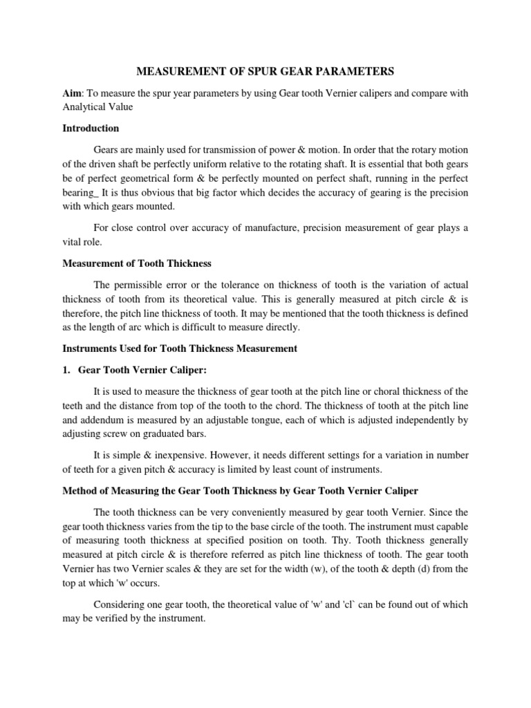 Spur Gear Measurement PDF Gear Accuracy And Precision