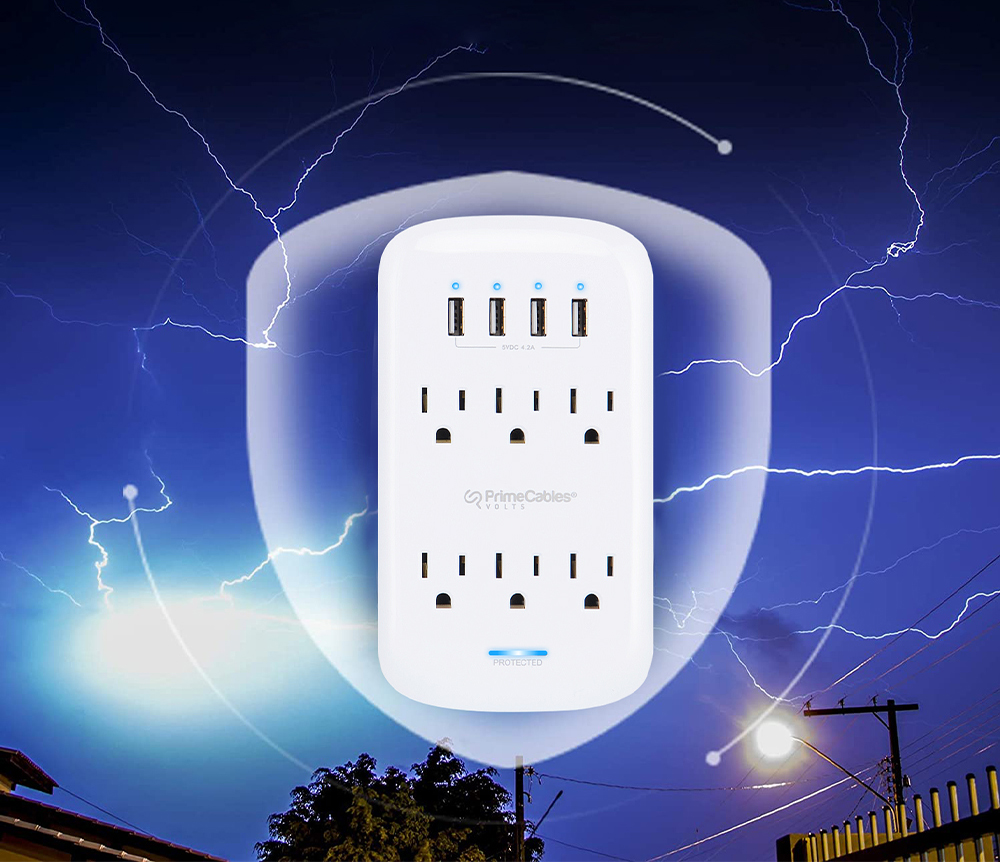 Surge Protector with 6 Outlets & 4 USB Ports PrimeCables