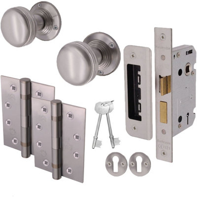 EAI Lined Lock Door Knob Kit Satin Chrome Knob 55mm Lock 80mm