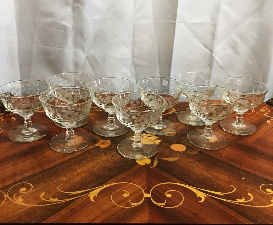 Vintage Glass Rock Sharpe Halifax Etched Champagne Cocktail Glasses 5 Cocktail Glasses Halifax beautiful set of 6 cornflower whisky glasses in excellent condition with no chips or cracks. browse whiskey glasses for dark liquors like scotch & bourbon. Cocktail Glasses Halifax.