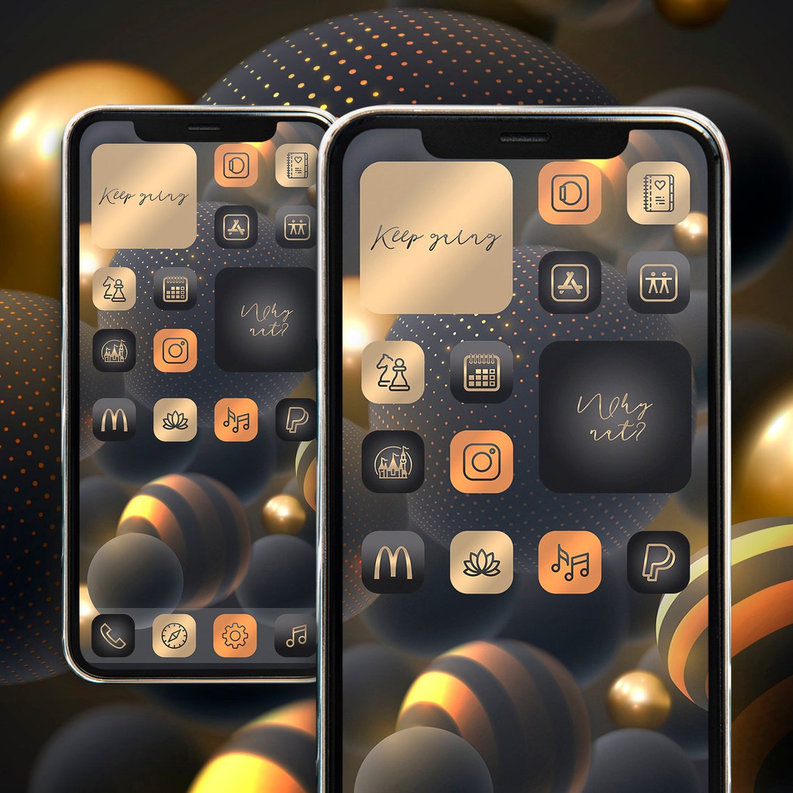Black Gold app icons collection widget iphone home screen app Etsy