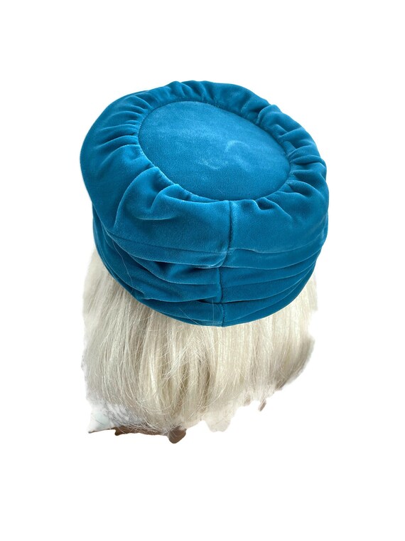 Vintage 1960s Pillbox Hat, Turquoise Velvet, Turban H… Gem