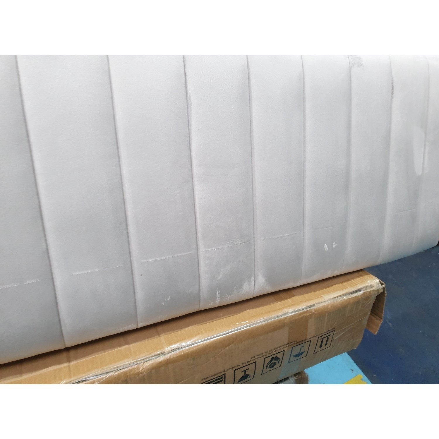 GRADE A2 Safina Striped Top Ottoman Storage Bench in Silver Grey Safina Striped Top Ottoman Storage Bench In Silver Grey Velvet Work an ottoman stool into your living room or an ottoman storage bench into your bedroom and you won't regret it. This storage ottoman is perfect for storing those board games and controllers that you want easy access to, but don't want cluttering up your. Beautifully upholstered in a plush velvet fabric and finished with vertical striped quilting, this stylish.. Safina Striped Top Ottoman Storage Bench In Silver Grey Velvet.