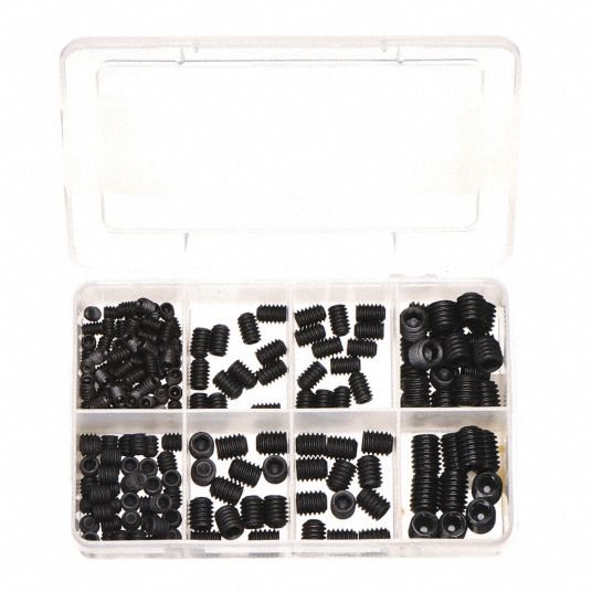 500 Pieces, 20 of Sizes, Socket Set Screw Assortment 402K62 Socket Set Screw Assortment M3 4 5 6 8 hex allen head socket set screw. Boltsandnuts.com is your source for high quality fasteners, available by the piece, package, and bulk. Screw assortment sets and packs offer the best value when requiring a bundle of different types, sizes, lengths, diameters and much more. Shop socket set screws drawer/container. In stock and ready to ship. 106. Socket Set Screw Assortment.