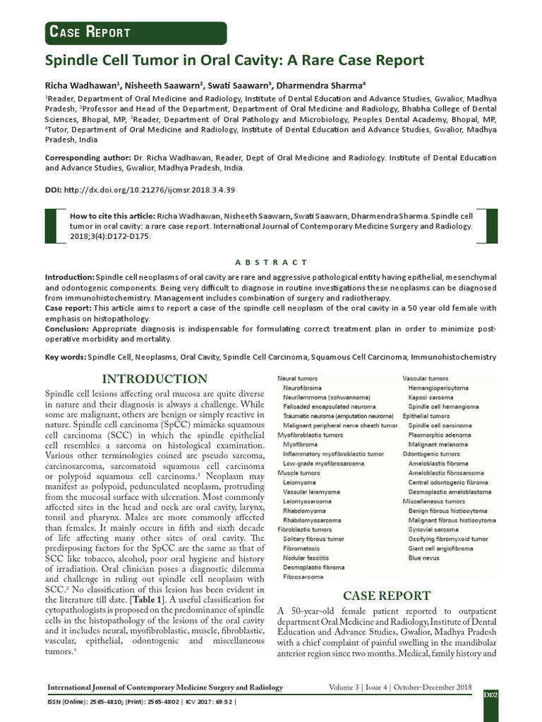 Spindle Cell Tumor in Oral Cavity A Rare Case Report Ase Eport PDF Spindle Cell Carcinoma Head And Neck Spindle cell lesions can occur in head and neck skin, in the soft tissues of the scalp, orbit, and neck, and along the upper. Better understanding of hn spc. Spindle cell carcinoma of the head and neck (hnspcc) is a rare variant of head and neck squamous cell carcinoma (hnscc). Spindle cell carcinoma of the head and neck is a. Spindle Cell Carcinoma Head And Neck.