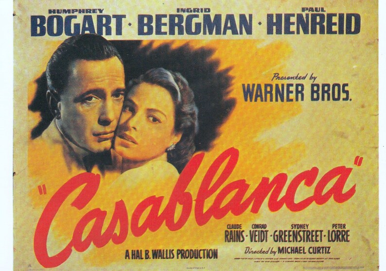 Spanish Cinema Poster Postcard of the 1942 Film, casablanca. Humphrey