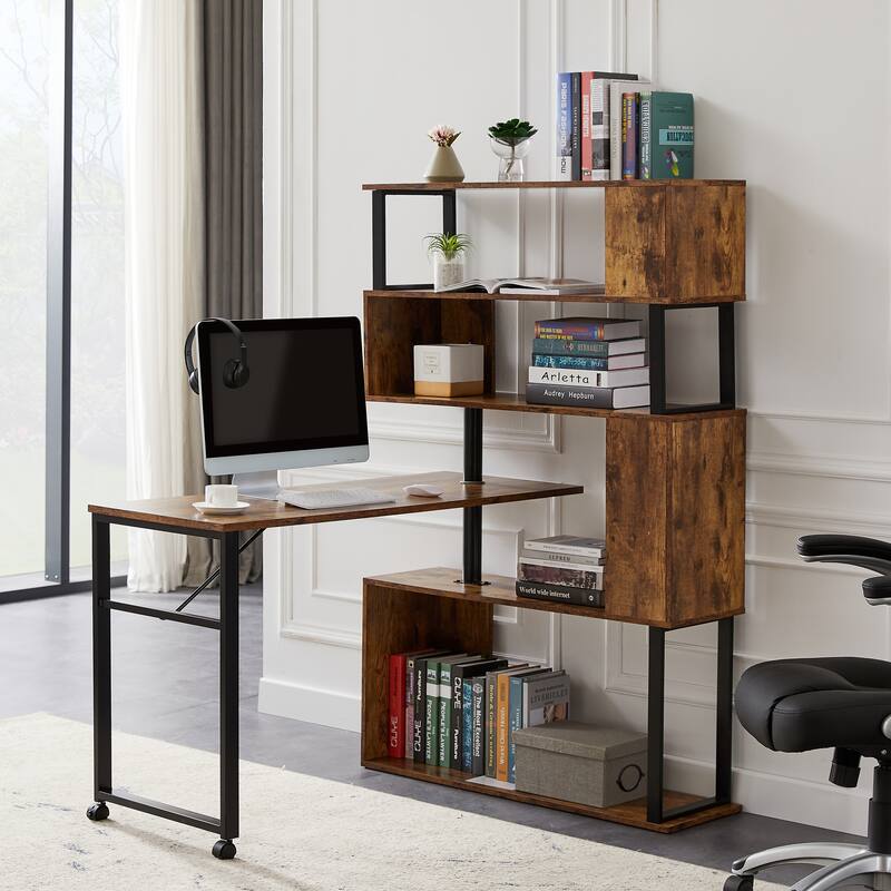 Tribesigns Rotating Computer Desk with 5 Shelves Bookshelf, Vintage Corner Desk With Bookshelf Check each product page for other buying options. Get your workspace organized with a corner desk with hutch. Dwvo l shaped desk with drawers, 55 corner computer desk with bookshelf & power outlets & led lights, home office desk with storage. Enjoy free shipping on most stuff, even big stuff. Price and other details may vary based. Shop best buy. Corner Desk With Bookshelf.