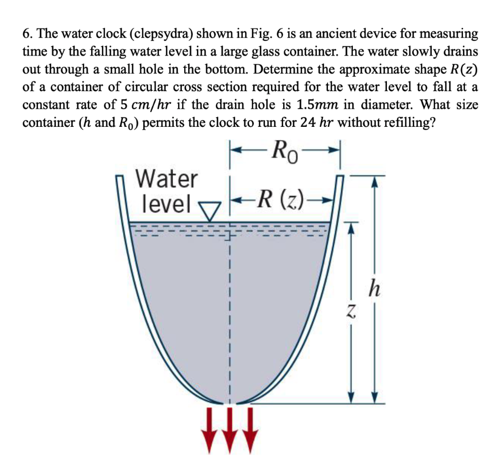 Solved 6. The water clock (clepsydra) shown in Fig. 6 is an