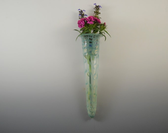 Wall Pocket Vase Art Glass Hand Blown Blue Turquoise 10" Vtg Hanging Hand Blown Glass Wall Vase for a stunning centrepiece for a table, or for a side board or mantelpiece, choose this smoke trail hand blown glass vase by kalki. the glass art vases we have secured are an eclectic mix of lead crystal, cut crystal, tall, miniature, traditional, and ultramodern. Recycled glass barware for your celebrations. New | plug in wall lights. All. Hand Blown Glass Wall Vase.