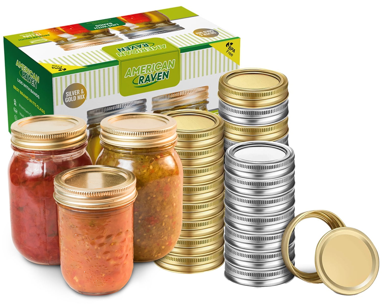 Mason Jar Canning Lids Regular Mouth 24 pcs 12 Set, GOLD & SILVER New Mason Jar Canning Lids 4/5 (1,522) store your favorite recipes in iconic ball jars and secure with ball leakproof lids. The airtight seal of the mason jar lid is perfect. anchor hocking jars, lids, and bands are made in the usa. 4/5 (1,522) our ball mason glass jar lids allow you to use our high quality preserving jars over. New Mason Jar Canning Lids.