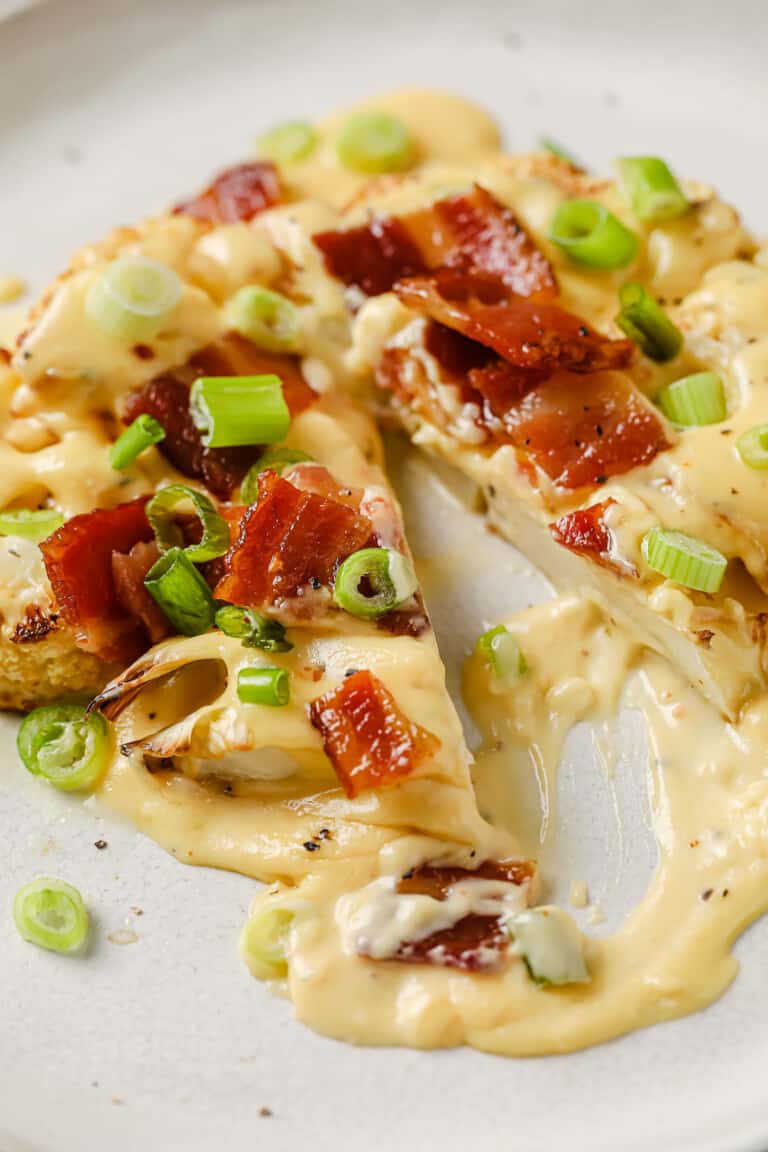 Low carb cauliflower steaks with bacon and cheese sauce Artofit Roasted Cauliflower Steaks With Cheese Sauce A low carb side dish (or main dish) for veggie lovers! Roasted cauliflower with cheese sauce is from the royal british fest at table for 12. creamy, cheesy, toasty, al dente cauliflower is as comforting as comfort food gets! sliced and oven roasted cauliflower steaks make a gorgeous presentation. these cheesy cauliflower steaks are perfectly tender, roasted. Roasted Cauliflower Steaks With Cheese Sauce.