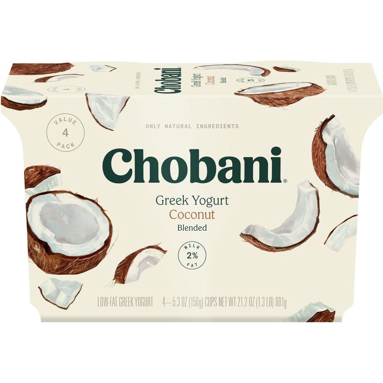 Yogurt Chobani Coconut chobani® coconut greek yogurt. chobani® zero sugar* greek yogurt toasted coconut vanilla. Guests appreciate its rich coconut taste, smooth texture, and nutritional benefits, including high protein and probiotics. Made with only natural ingredients. * percentage of daily values are based on a 2,000 calorie diet. calories and other nutrition information for yogurt, greek, reduced fat, coconut, blended. Yogurt Chobani Coconut.