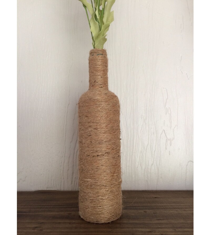 I have a table in my entrance that needed some love, so i decided to upcycle some. Twine bottle with faux lambs ear, upcycled two toned roped. — diy twine wrapped bottle vases is trendy & vintage, bringing back memories from the 70’s. — upcycling wine bottles: Diy twine wrapped decorative vases. make a twine wrapped vase in minutes with this easy craft technique! You will love these vases for fall or any time of the year! easily decorate your old vase with jute twine. Put a bit of glue on the side of the bottle. Remove any stickers or labels from the vase.