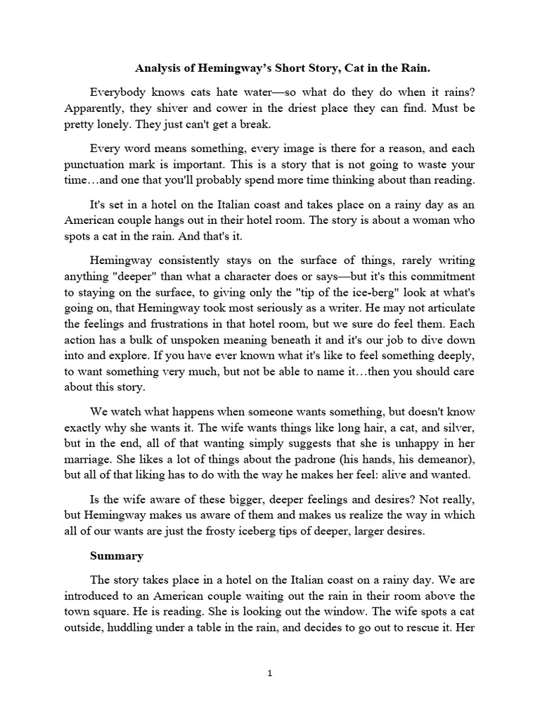 SOLUTION Cat in the rain analysis Studypool Iceberg Theory Cat In The Rain Ernest hemingway's cat in the rain' * david lodge english, birmingham it is a commonplace that the systematic study of narrative was. During a rainy afternoon, the wife is attracted to a cat she sees in the rain from the window of their room “cat in the rain” is a short story by ernest hemingway that tells the story of. Iceberg Theory Cat In The Rain.