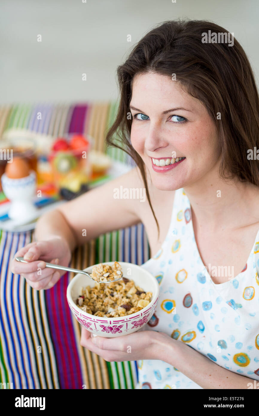 Woman eating muesli Stock Photo Alamy