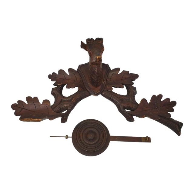 ANTIQUE GERMAN BLACK Forest Cuckoo Clock Parts Topper & Pendulum 124.