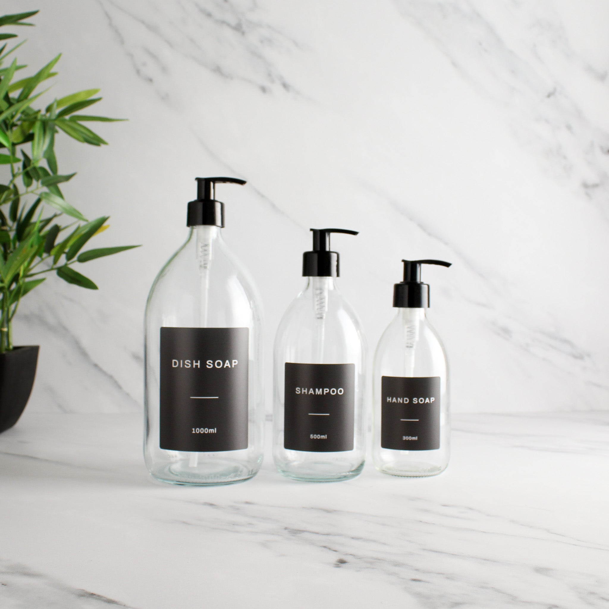 Labelled Clear Glass Dispenser Bottle With Black Pump Namie Home