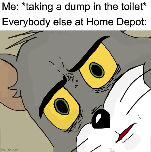 Image tagged in home depot,ambition Imgflip Home Depot Toilet Meme One moment, we’re just looking to buy a drill at home depot, and the next minute we’re in a violent altercation with a random man over wax toilet rings, the police are called, and you’re about to lose the job you didn’t have in the first place. This happened at the west side home depot. Dank (for a certain definition. Home Depot Toilet Meme.