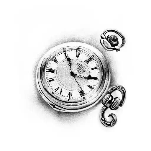 Black and Grey "Pocket Watch Son Rugby" Tattoo Idea BlackInk AI