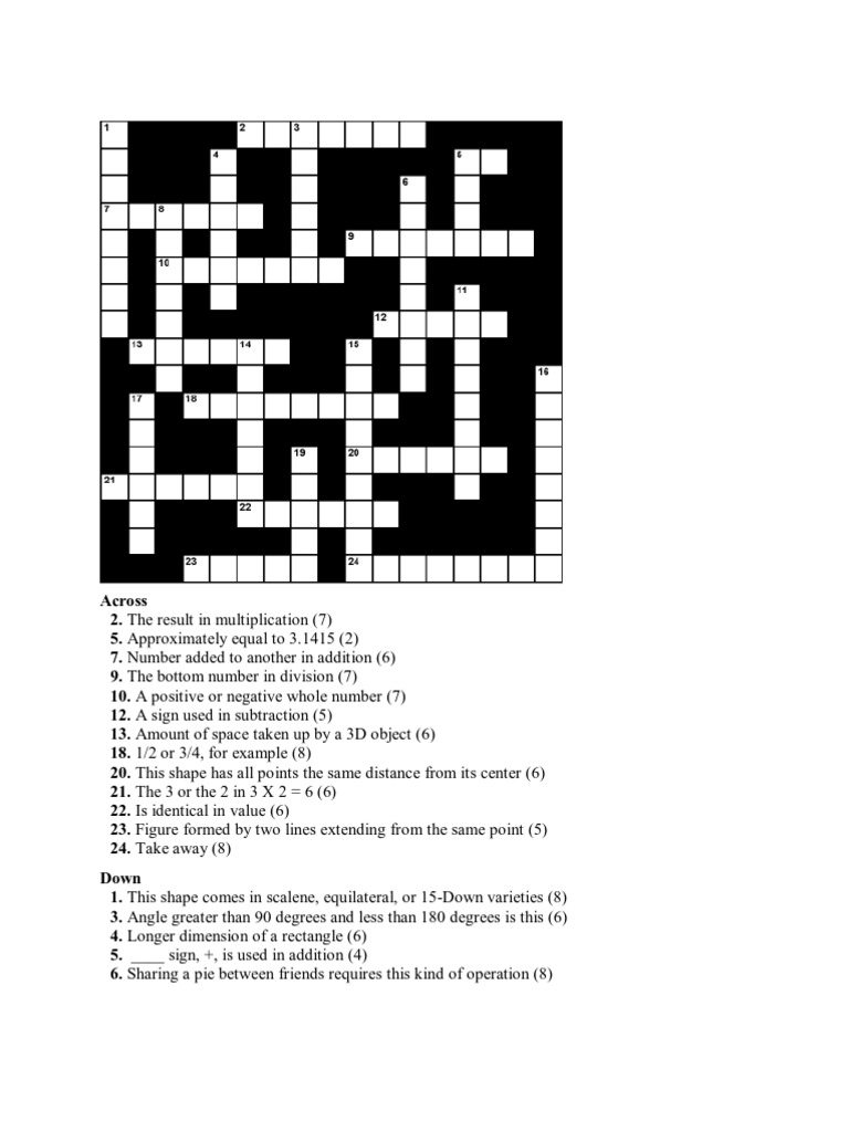 Math Crosswords Cartesian Coordinate System Geometric Shapes