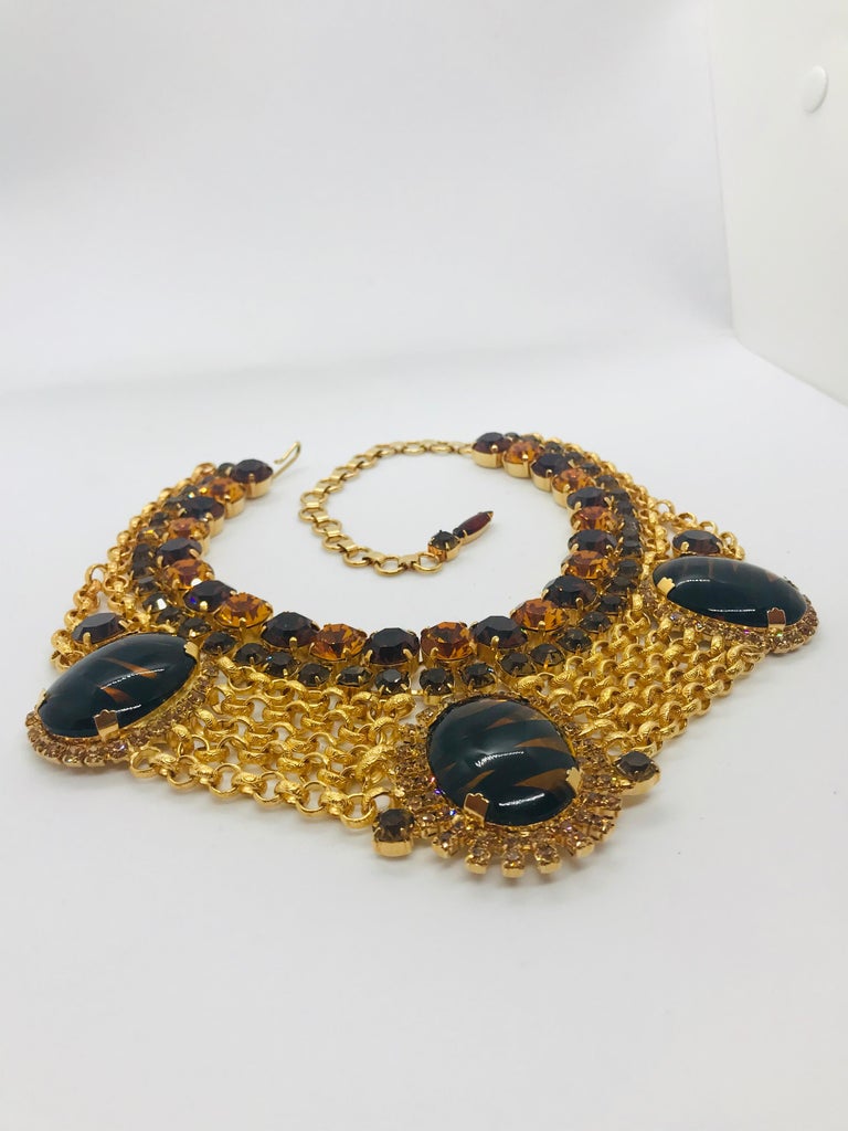 "Tortoise" Czech Cabochon Swag Chain Necklace For Sale at 1stDibs