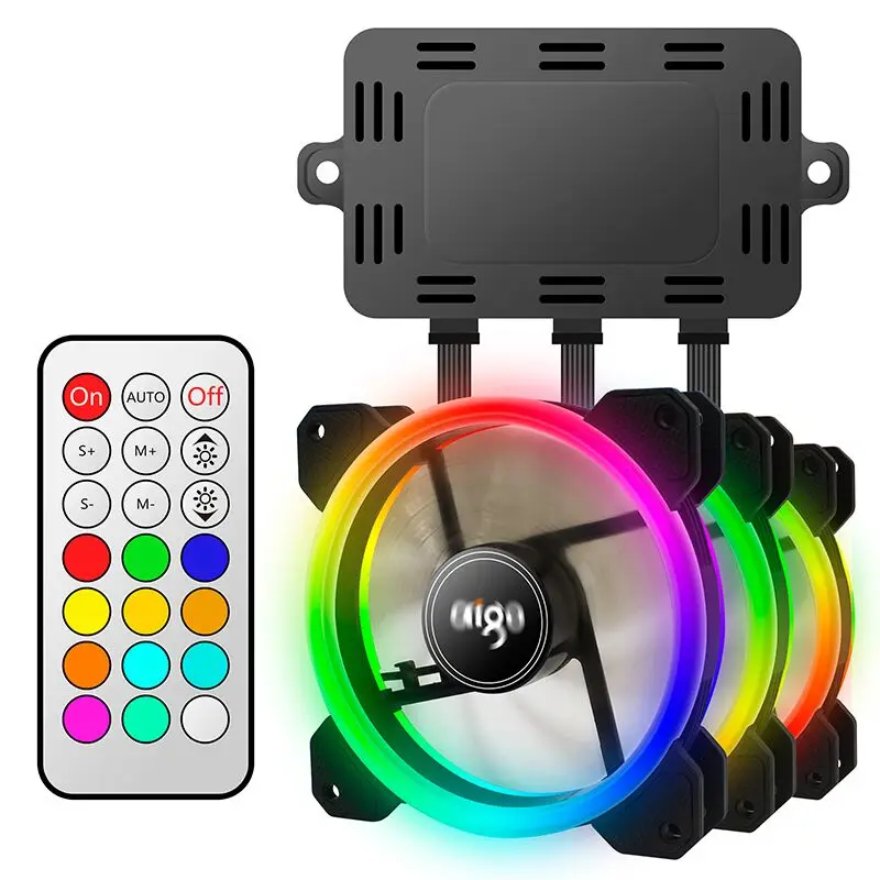 Cheap Price Aigo DR12 3pcs Computer Case PC Cooling Fan RGB Adjust LED