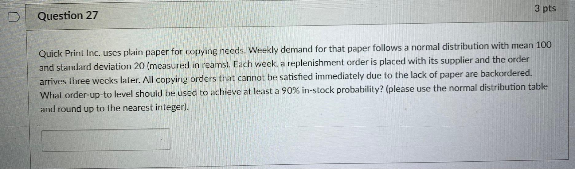 Solved 3 pts Question 27 Quick Print Inc. uses plain paper
