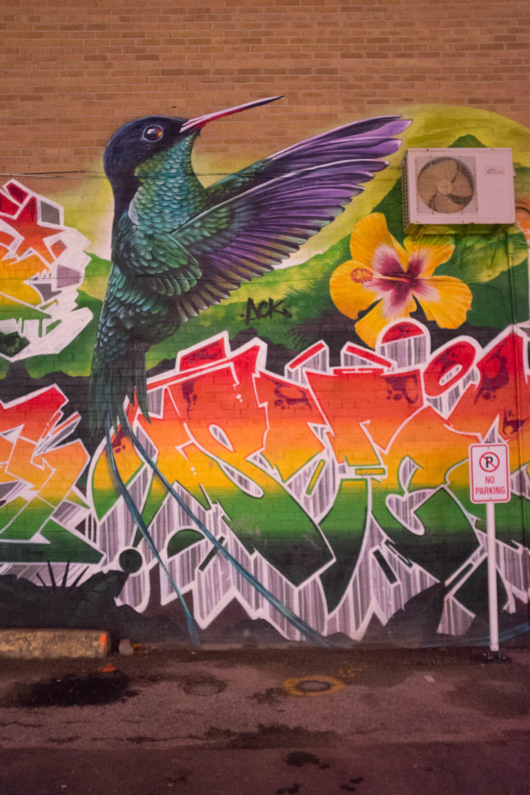 Hummingbird mural a sibilant intake of breath