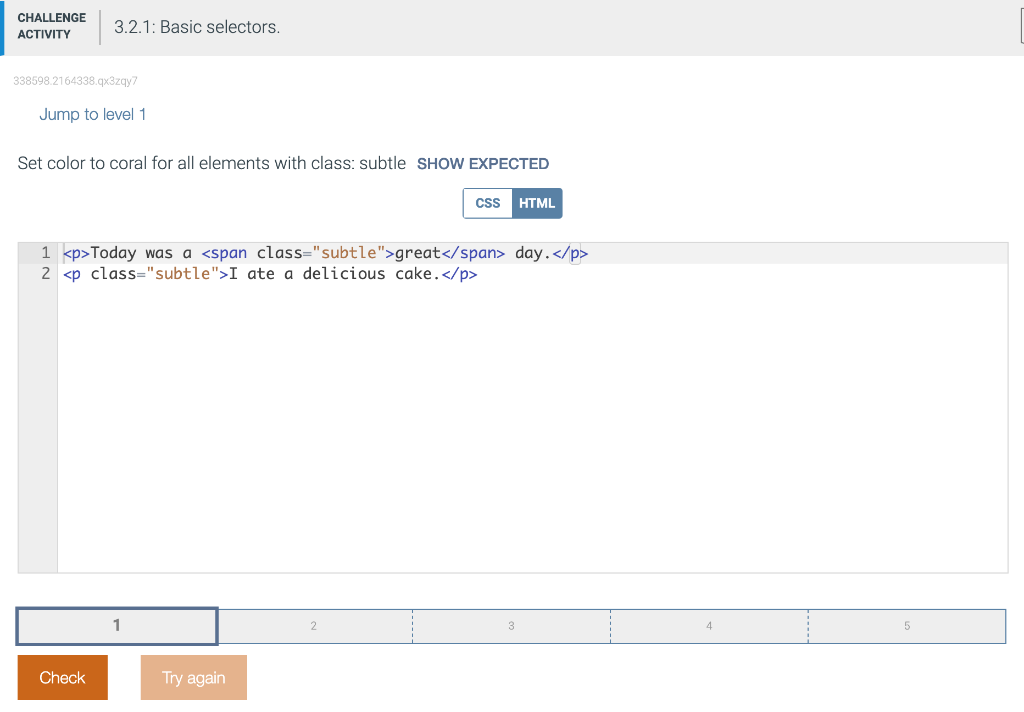 Solved CHALLENGE ACTIVITY 421 Basic selectors. 4.2.1 Ba Set Background-Color To Gold For All Elements With Class Exaggerate Here, the ,