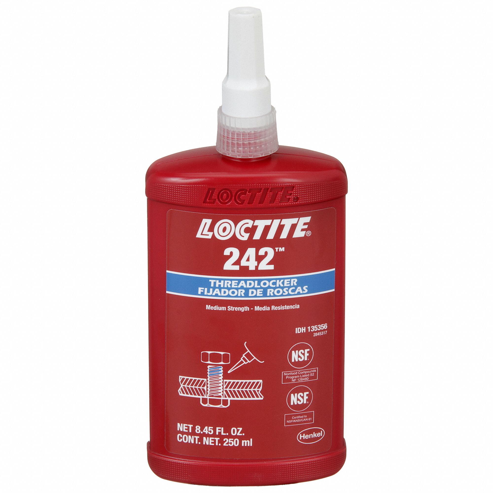 LOCTITE, 242, Blue, MediumStrength Threadlocker 4KL40135356 Grainger