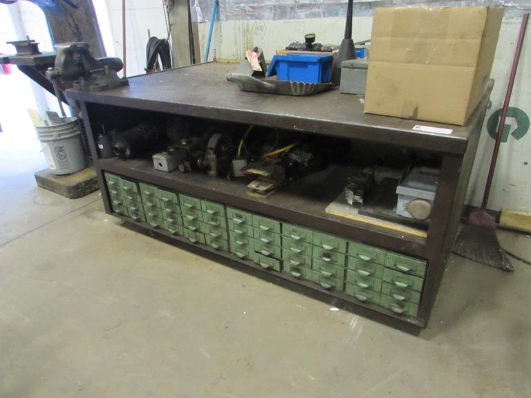 Machines Used Work Bench (Steel) with Bench Vise and Contents