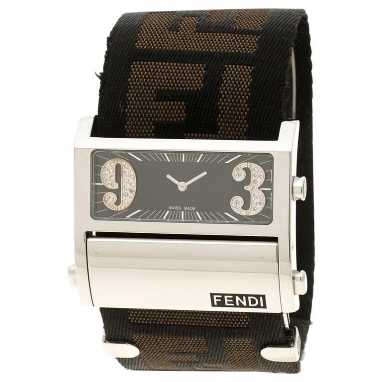 Fendi Black Stainless Steel Diamond Zip Code 1120G Women's Wristwatch