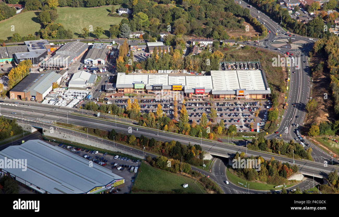 aerial view of Stanley Green Retail Park, Cheadle Hulme, UK Stock Photo