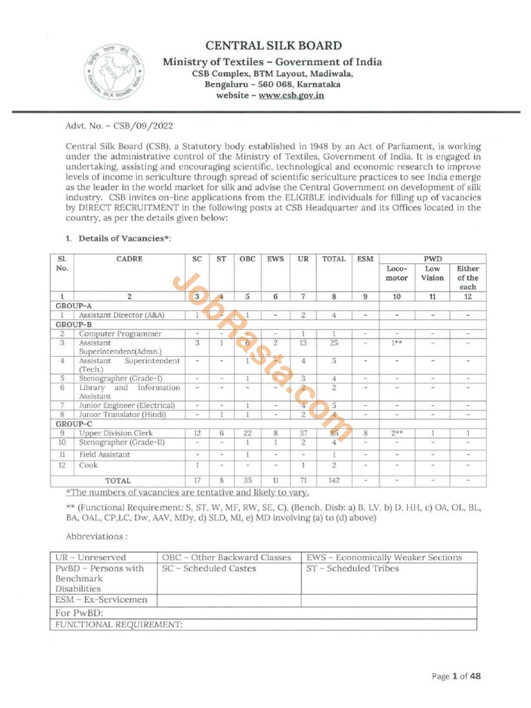 CSB Recruitment 2022 Notification JobRasta PDF