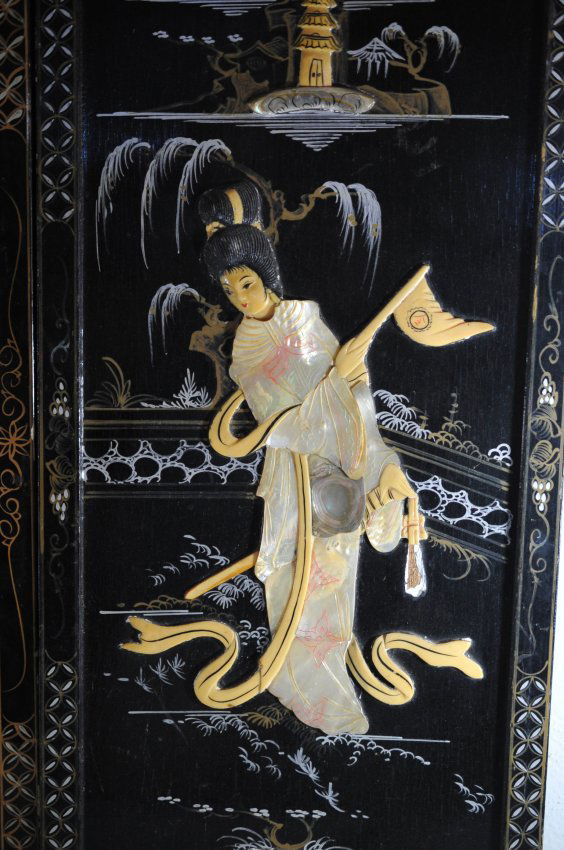138 Four vintage Japanese shell art plaques Lot 138