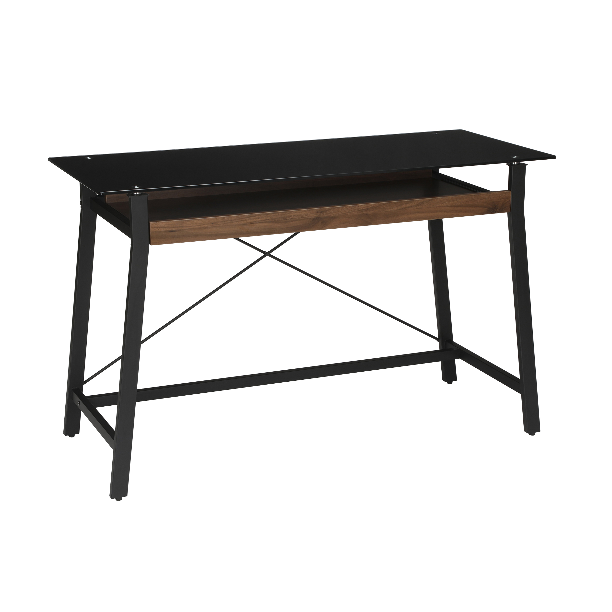 42" modern glass top desk dark walnut and black dm42chmgdw Contemporary Glass Top Desk create the ideal work or study station with this contemporary 55'' computer desk. for a unique modern desk style, replace your original drawer handles with modern cabinet knobs and pulls and opt for wood frames with floating tempered glass. It features a tempered glass top and a base. Upgrade your workspace with sleek materials that offer durability and.. Contemporary Glass Top Desk.