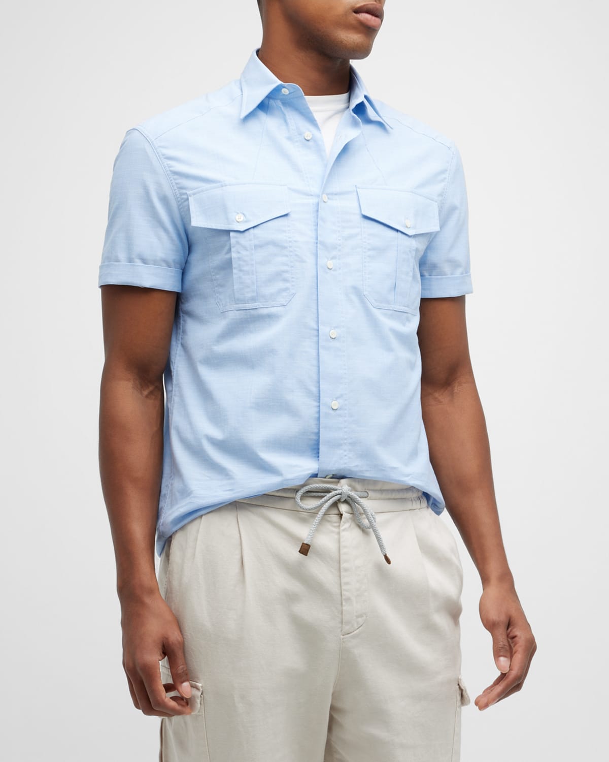 Brunello Cucinelli Men's Linen Camp Shirt Neiman Marcus