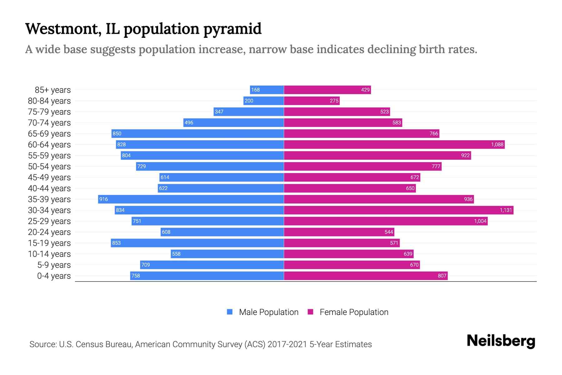 Westmont, IL Population by Age 2023 Westmont, IL Age Demographics