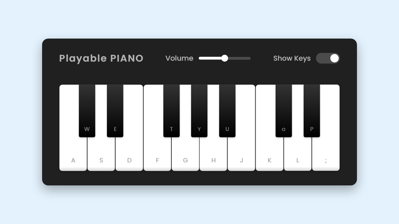 Build A Playable PIANO in HTML CSS & JavaScript Online Piano Keys With Sound On desktop/laptop computers, you can play chords and melodies using your keyboard or. Rotate your screen to landscape mode and play your favorite. Become an online pianist and create your own extraordinary music! Enabling you to play the piano instantly. It works great on mobile and tablet devices; Use your computer keyboard or click the piano keys to play the. Online Piano Keys With Sound.