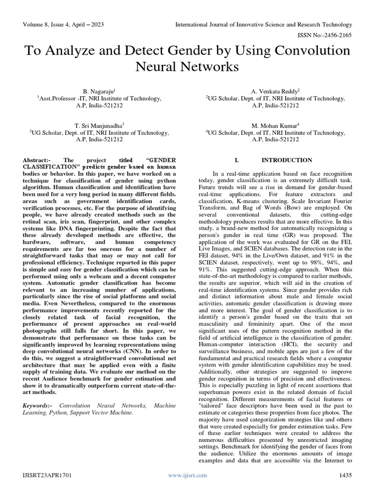 To Analyze and Detect Gender by Using Convolution Neural Networks PDF