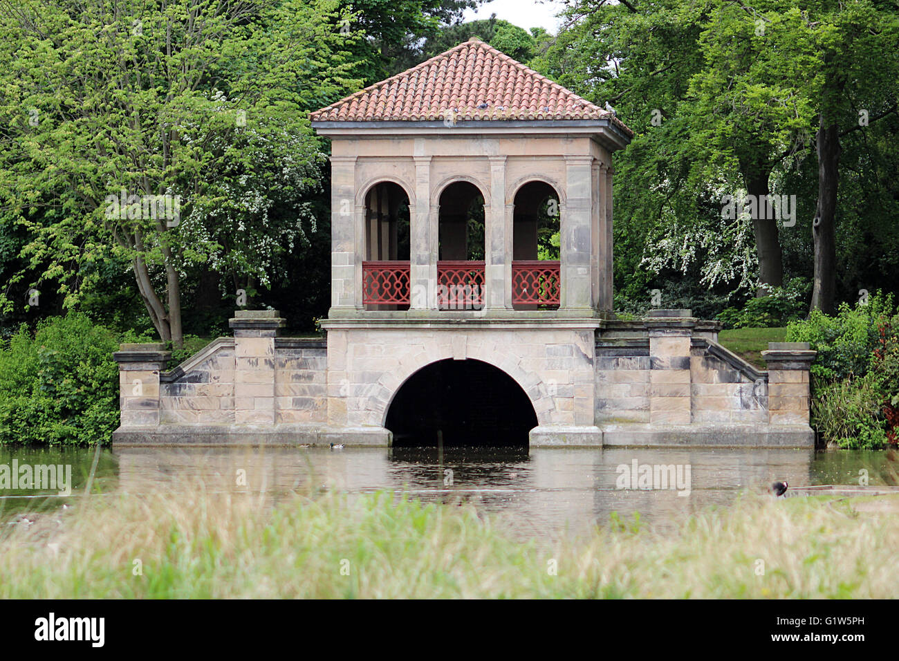Ornate park bridge Birkenhead central park Stock Photo Alamy