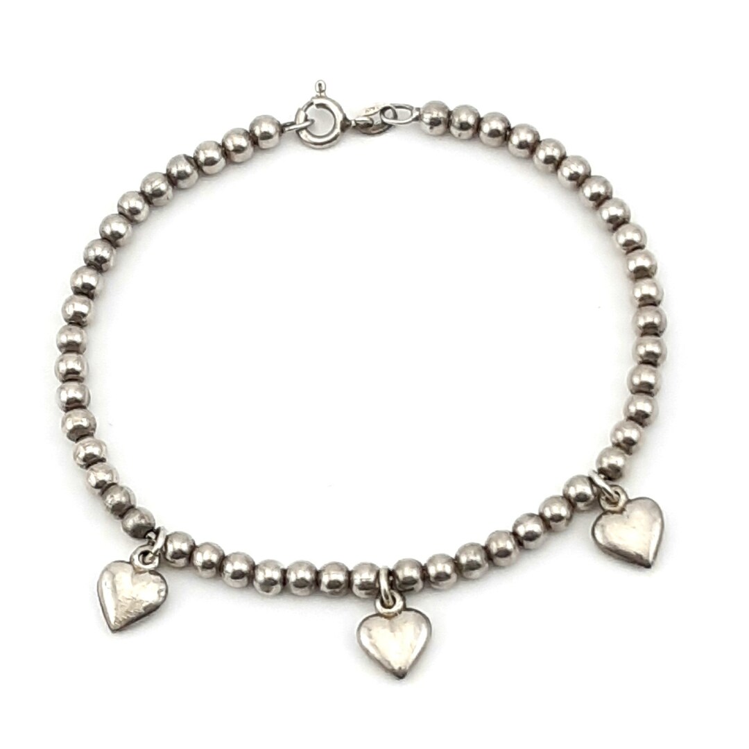Sterling Silver Ball Bead Bracelet Puffy Heart Toggles Etsy