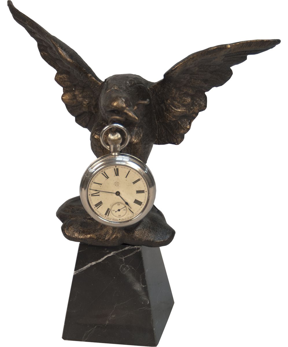 CastIron Eagle Pocket Watch Holder On Marble Base w/ P